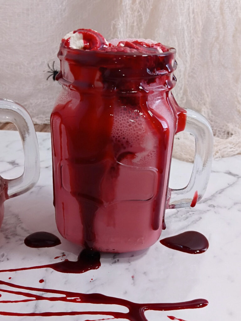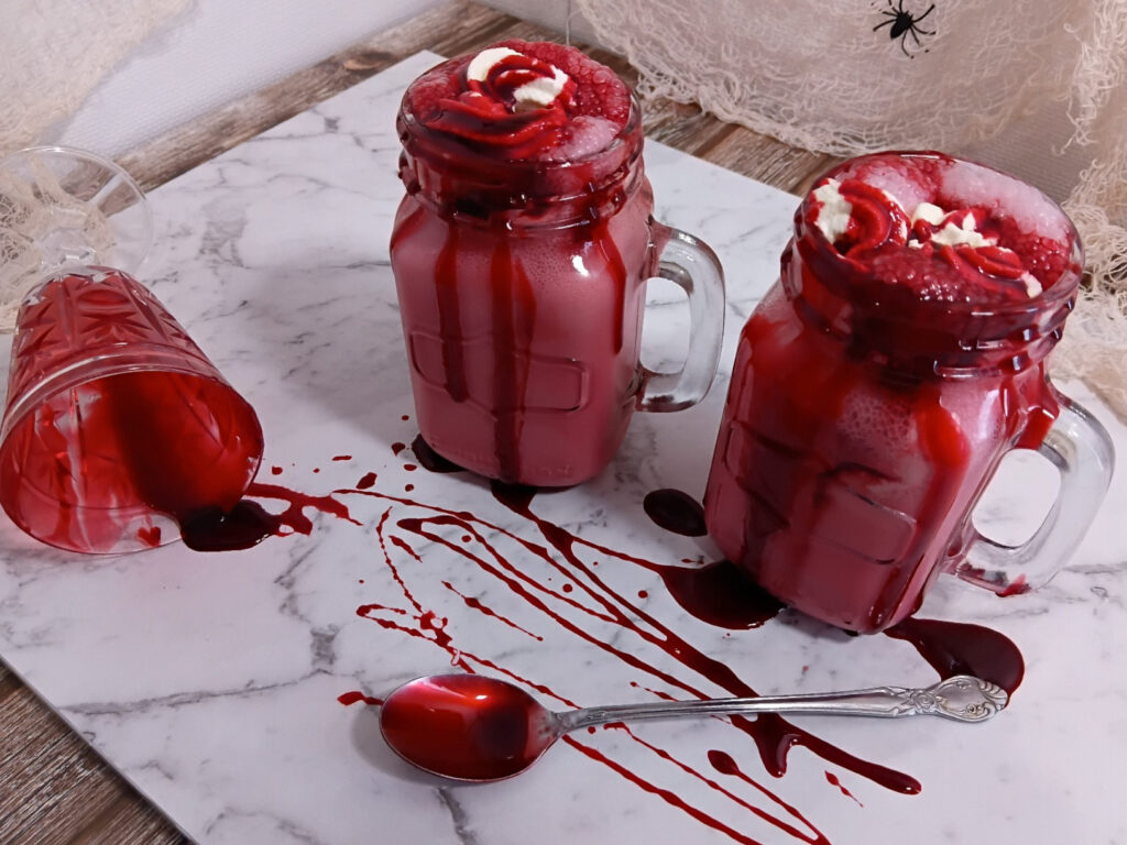 These bloody vampire milkshakes have become a favorite over the years. These are the perfect thing to make if you are in need of a quick and easy spooky treat. The taste of this is similar to a vanilla butterscotch with just hint of chocolate This recipe will make 3-4 milkshakes. Serve these up alongside some bloody popcorn for your next spooky movie night, make an extra large batch for a Halloween party or just make them as a delicious treat just because you want to.