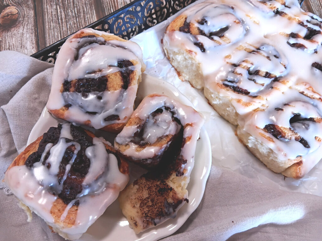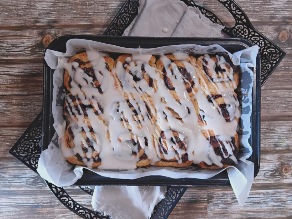 14. Pour your icing over the scrolls and serve.