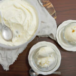 Maple walnut – Swap the sugar for 1/4 cup maple syrup and 1/4 cup brown sugar. Add 1/2 cup diced walnuts while churning. Then drizzle and swirl a little bit of maple syrup through the ice cream as you scoop it into your container.