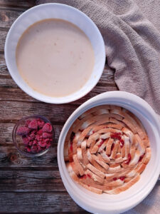 - Distribute your raspberries through your bread and butter pudding by placing them between your bread slices.